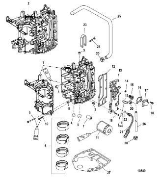 Блок цилиндров 4-Х ТАКТНОГО ПЛМ MERCURY 30 Серийный номер от 0P153500 до 0P400999